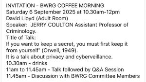 BWRG Coffee Morning, Talk on “Privacy and Cyberveillance” and open BW discussion at David Lloyd