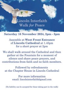 Assemble at West Front Entrance at 1.45pm for a short prayer at 2.00pm. Walk around the Cathedral and then gather at the Fountain for a moment of silence and to share peace prayers, and contributions from faith and no-faith members.